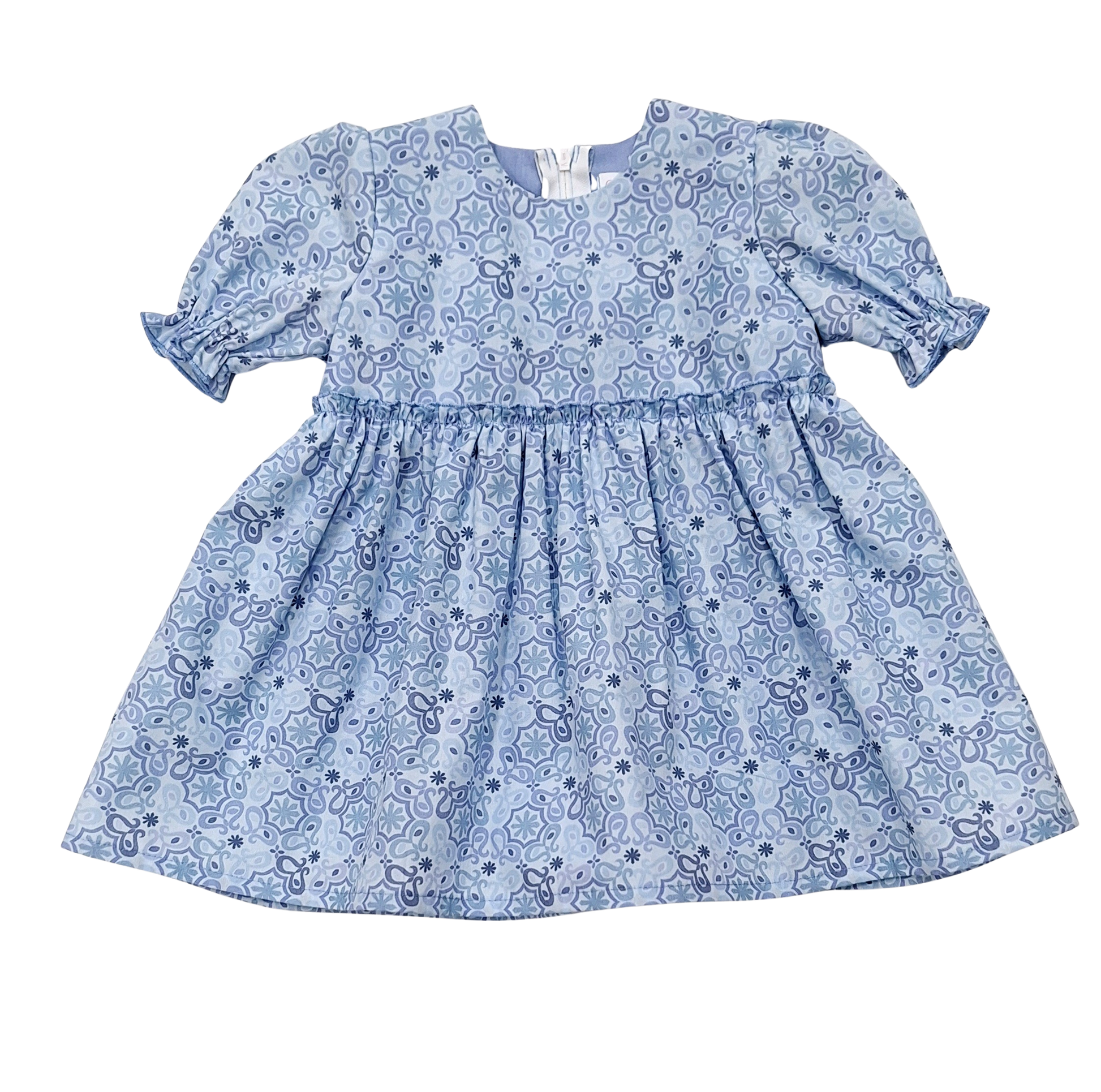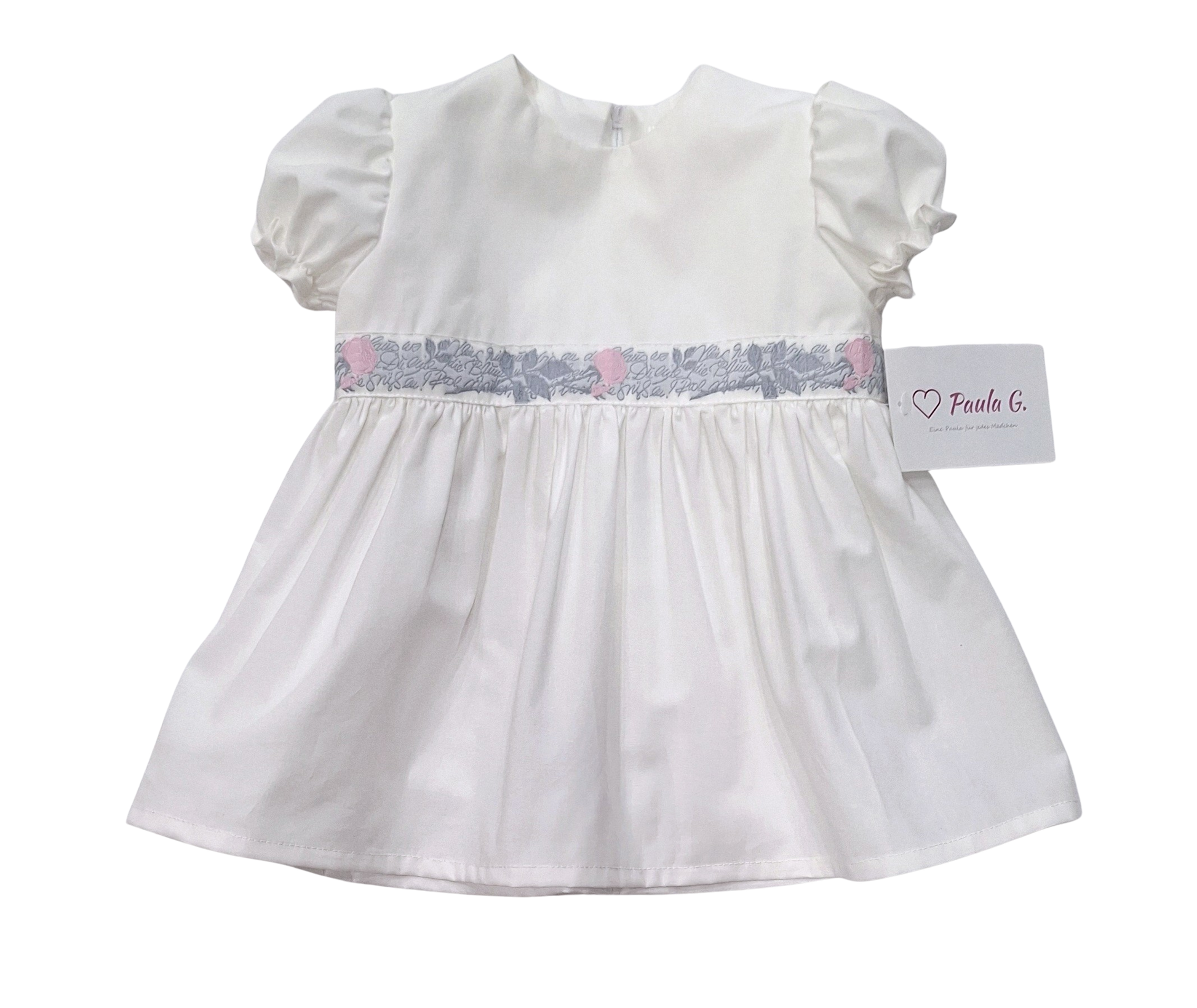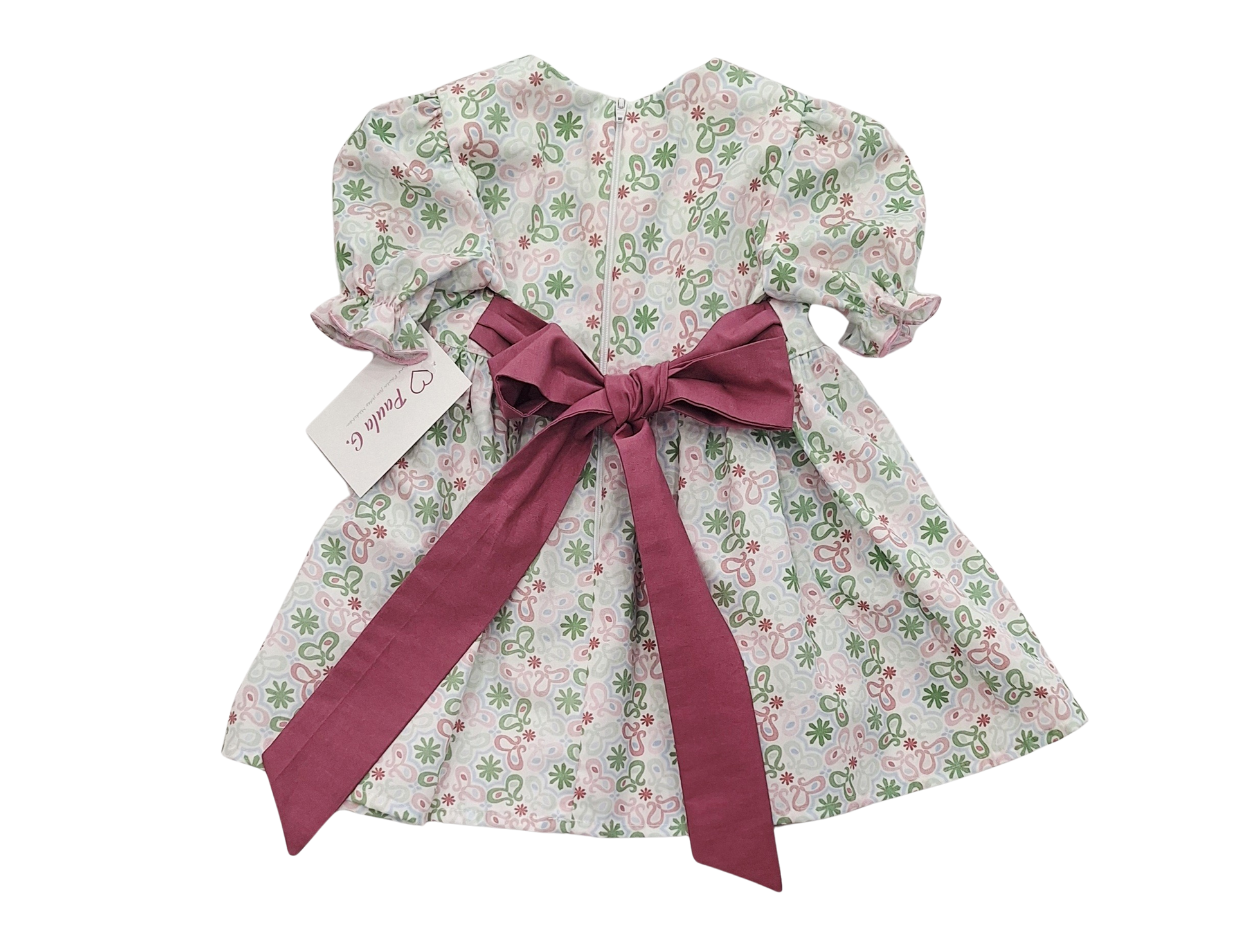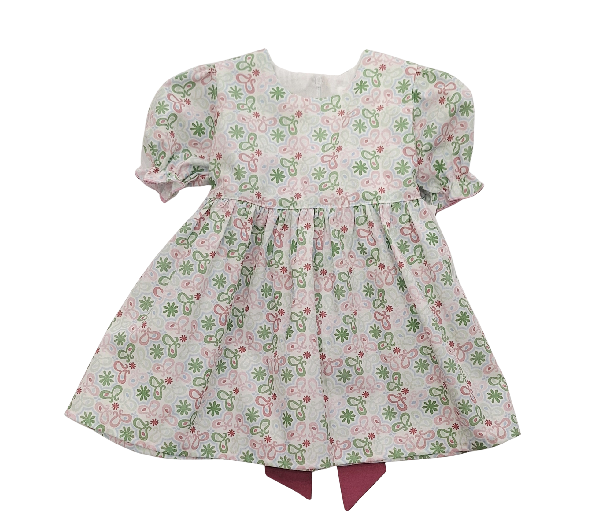 Kleid mit Rundhals, gerüschter Rock, angenähte Schleife zum Binden, Zipp im Rückenteil, perfekt für die Mädchengarderobe im Sommer, auch als festliches Kleid geeignet.